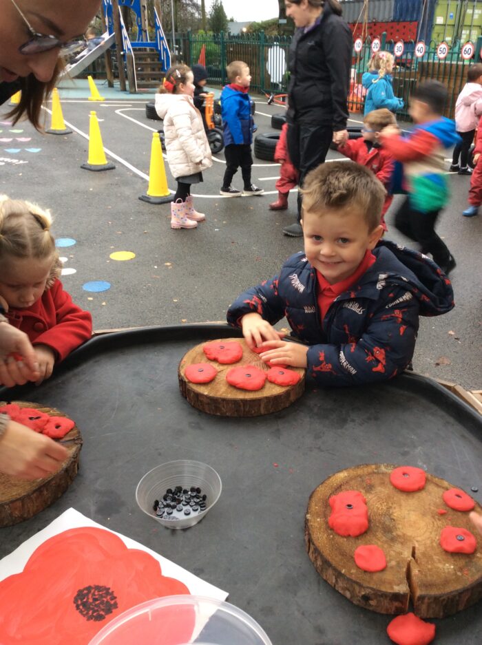Children discovered why people wear poppies in an introduction to Remembrance Day. We had two minutes silence to remember and think about all service men and women including soldiers and sailors, past and present, for their bravery and commitment to save our country. We painted poppies in the style of the American modernist artist, Georgia O’Keeffe, who is famous for her paintings of flowers on a large scale.