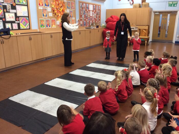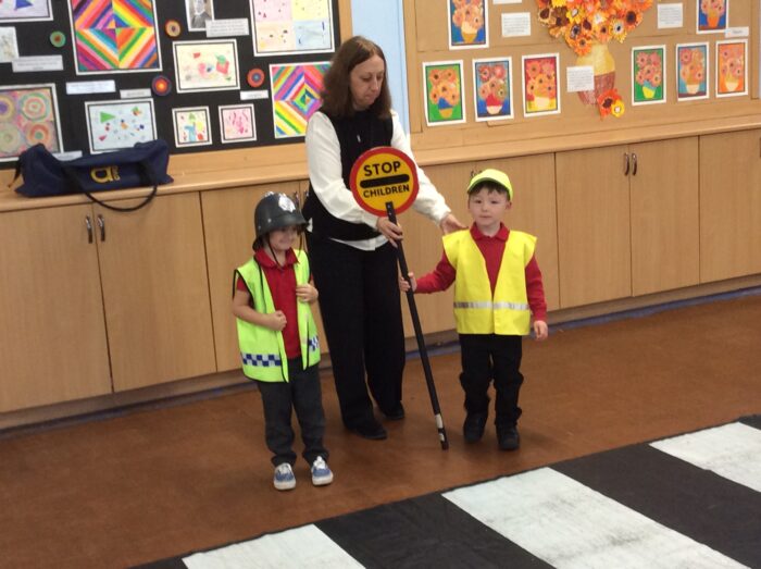 During Road Safety week we had a visitor into school from Rotherham Road Safety Education and Training. Ellie demonstrated how to cross the road and use a pelican crossing safely – we need to stop, look, listen and think!