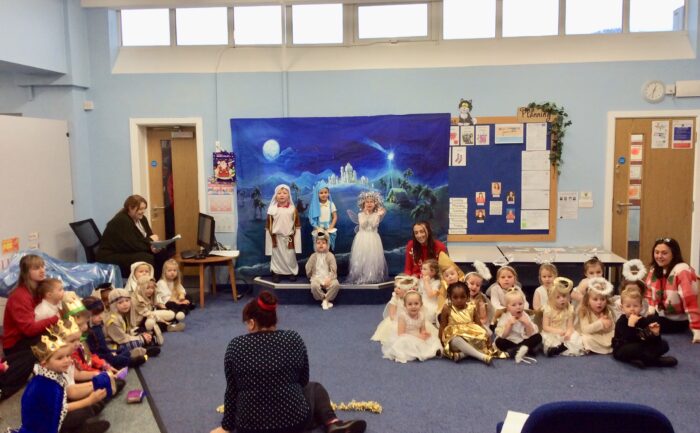After weeks of practise, the Clever Kittens performed their own nativity for their families, dressed up in various costumes – the children were tremendous. Finally, we celebrated together with a Christmas party and a visit from Father Christmas, so we must have been on his good list.