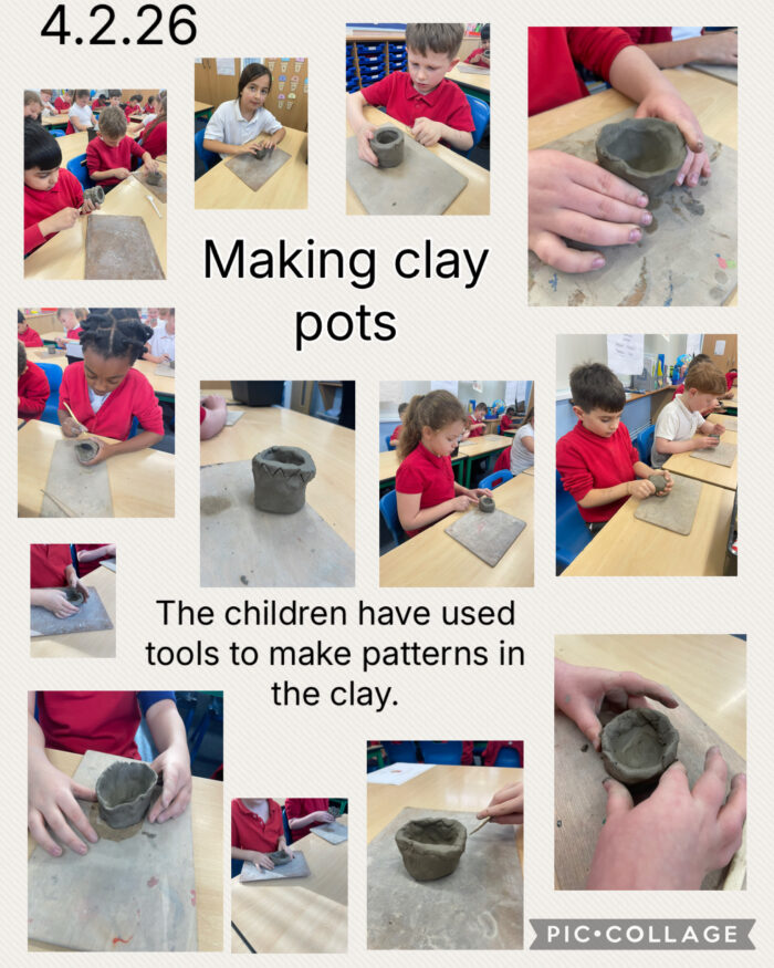 This half term, our history focus was the Bronze Age and Iron Age. We explored how life changed for early humans during this time and made links back to our previous topic, The Stone Age. Children learnt that the Bronze Age is the period immediately after the Stone Age and is the time when metals like bronze started to be commonly used. The children have learnt about the way that people lived in this time period and have looked at a range of sources from the past to look for clues to support this. We have made links to art within this unit of learning. Children have designed their own Bronze age pots and used clay to make their own.